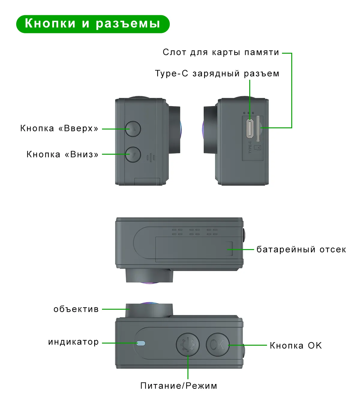 | Тип видеокамеры | Экшн-камера |