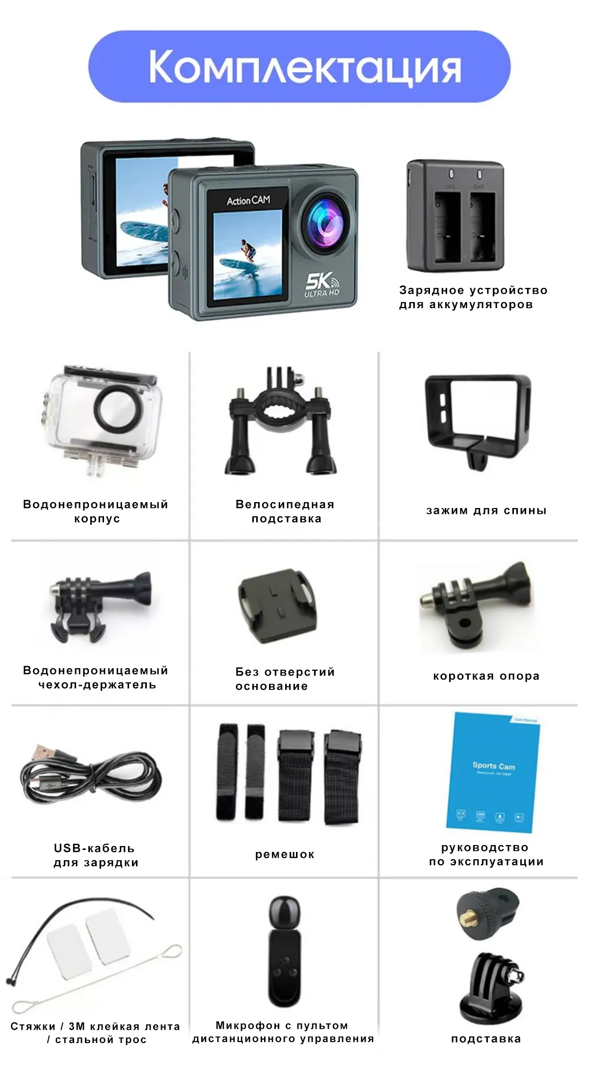 Погружайтесь в мир высокого разрешения с экшен-камерой 5K! Это устройство устанавливает новые стандарты качества с высокой четкостью изображения. В комплекте вы найдете не только саму камеру, но и 2 аккумулятора для длительной работы, зарядное устройство для удобной зарядки, влагобокс для съемки под водой и максимальный набор креплений для надежных съемок. Готовьтесь к захватывающим приключениям и запечатлевайте каждый момент с невероятной четкостью и надежностью.